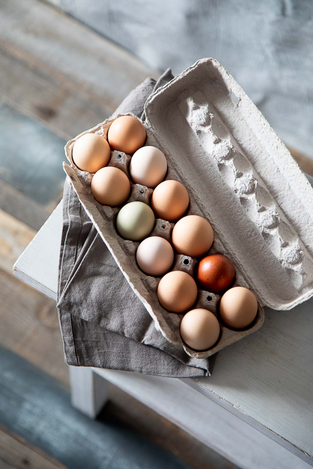 Egg yolks come in a variety of yellow and orange hues. I’ve found that free range, local, and heirloom eggs tend to have a darker hue – more orange.